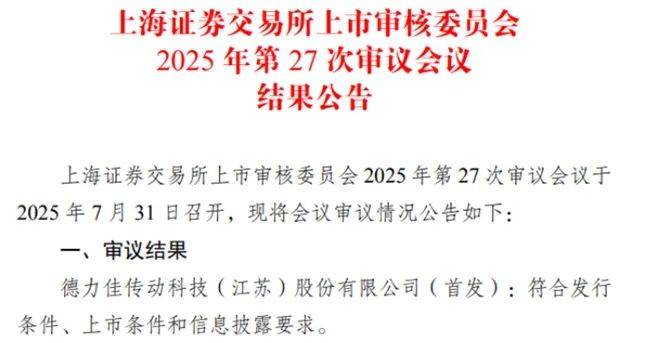 7月28日至8月3日期间,长江三星能源科技股份有限公司、德力佳传动科技(江苏)股份有限公司接受了上会审核,并成功通过了整个审核流程。